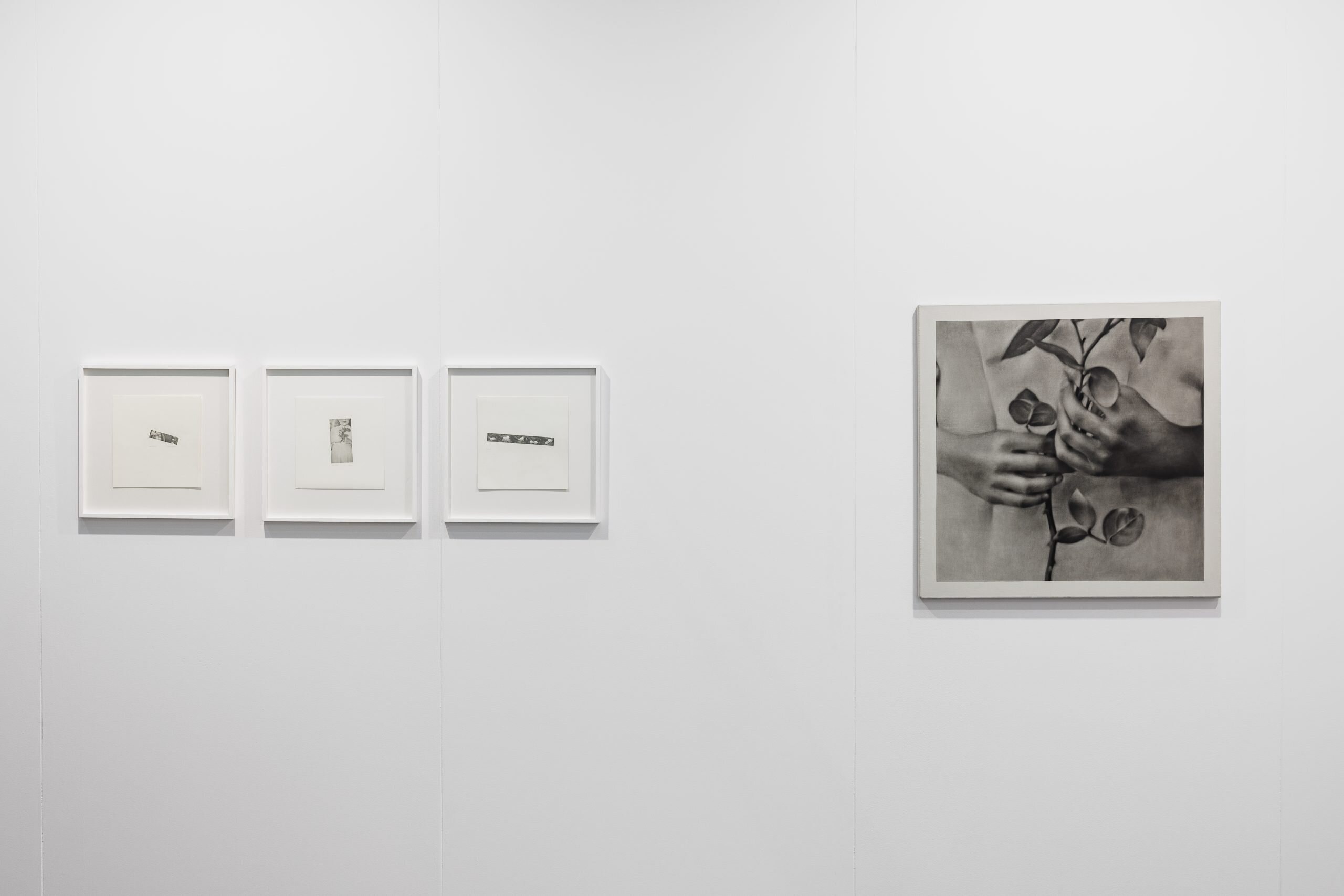 Krista Vindberga’s newly created charcoal drawing series This Is Not A Love Story embodies collective memory and reveals the tension between the fragility and vulnerability of beauty. Inspired by photographs collected over nearly 25 years, she turns to the motif of blooming roses in the hands of young people, where hands and gestures become the central subject, illuminating the moment when romance transforms into melancholy and threat.