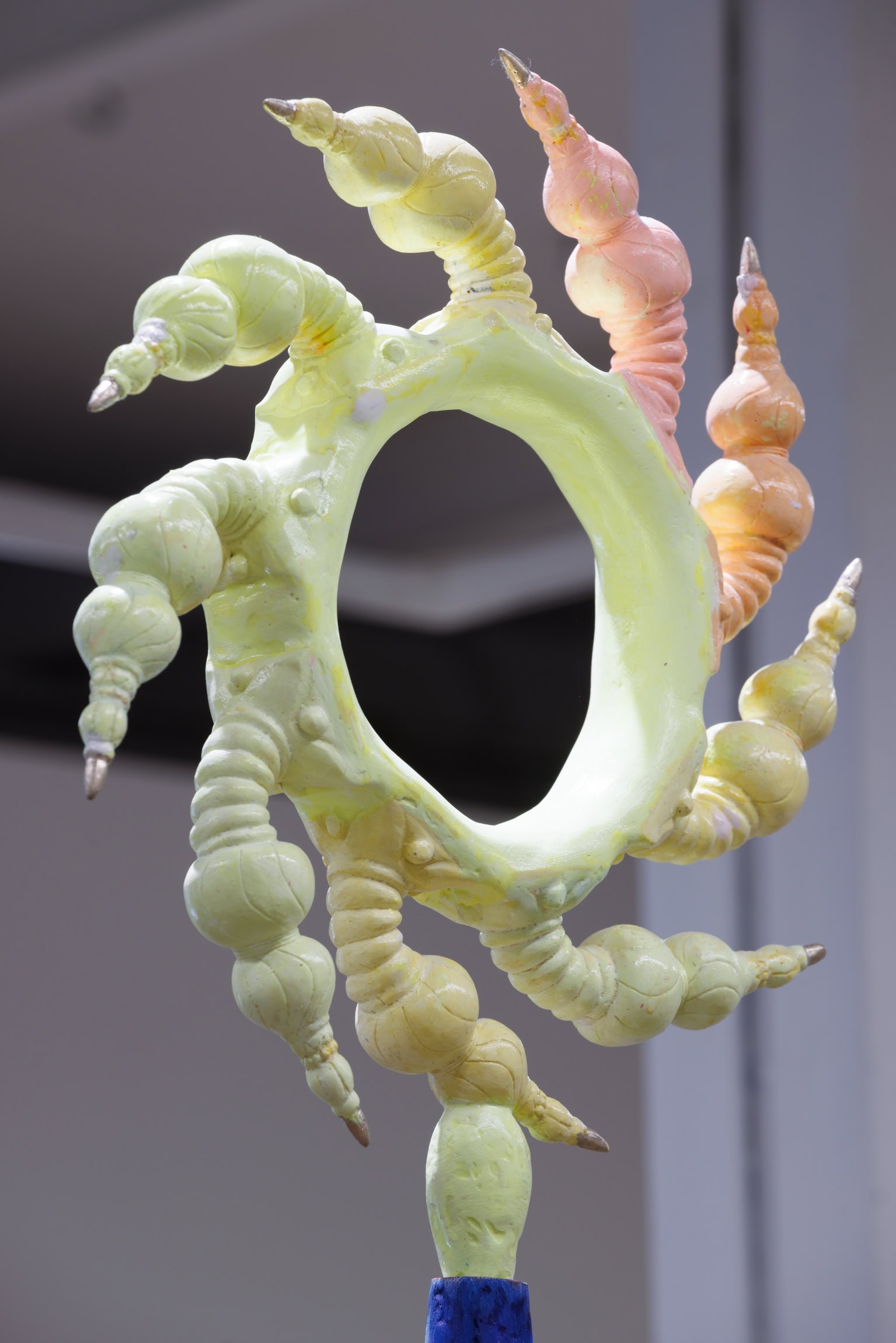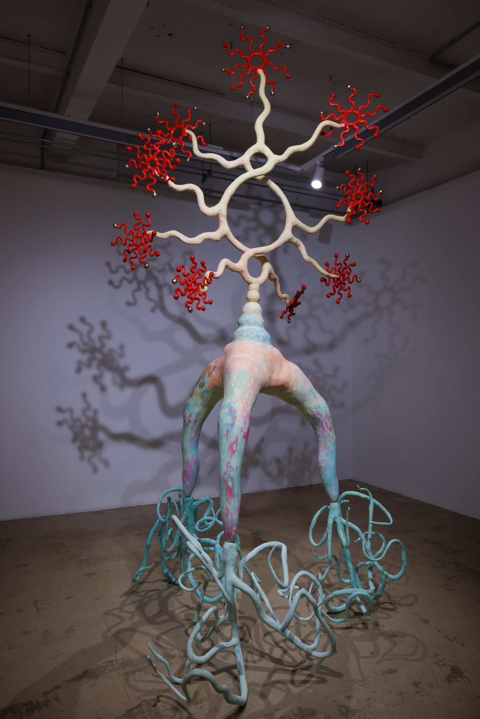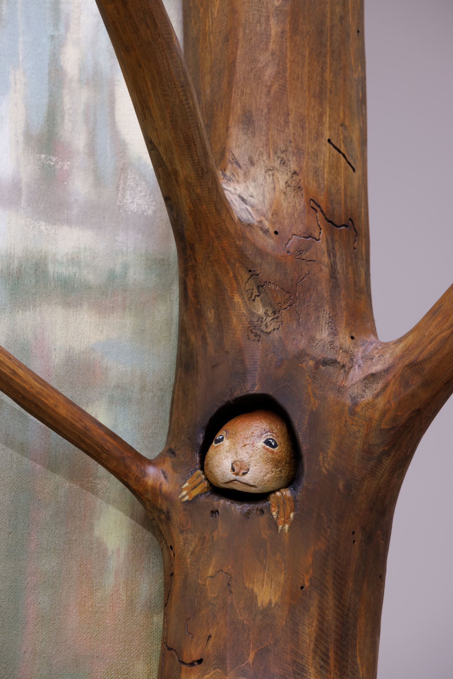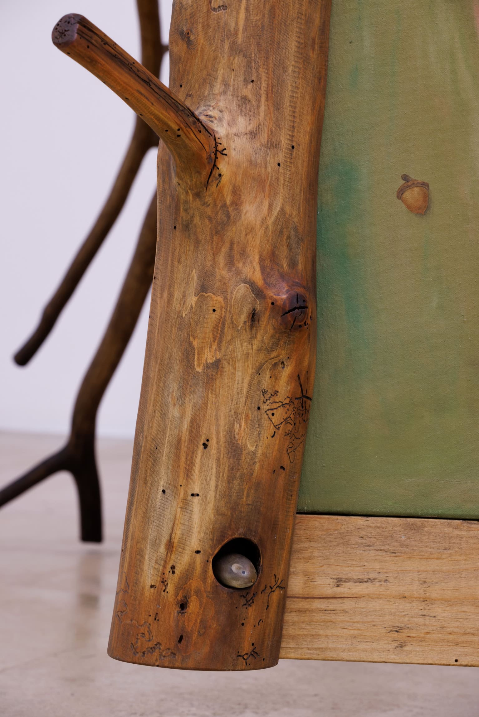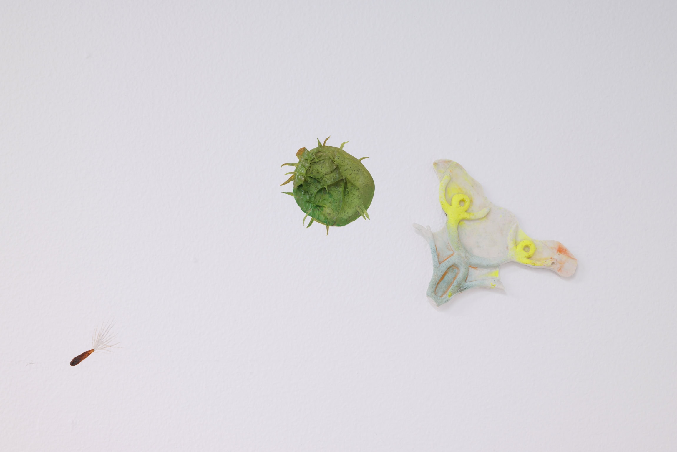 Pārejot nākamajā zonā, izstādes noskaņa kļūst gaisīgāka un pulsējošāka, atgādinot bagātīgi uzirdinātu zemi, kas pilna ar sēklām un iespējamībām. Šeit dominē rosība, ideju uzslāņojumi un savstarpēja iedarbība – telpa aicina domāt, savienot un ļauties radošām plūsmām. Tā ir pārejas vide, kur pieredze un intuīcija sāk dīgt, aktualizējot mācīšanās, transformācijas un iekšējas nobriešanas procesu.