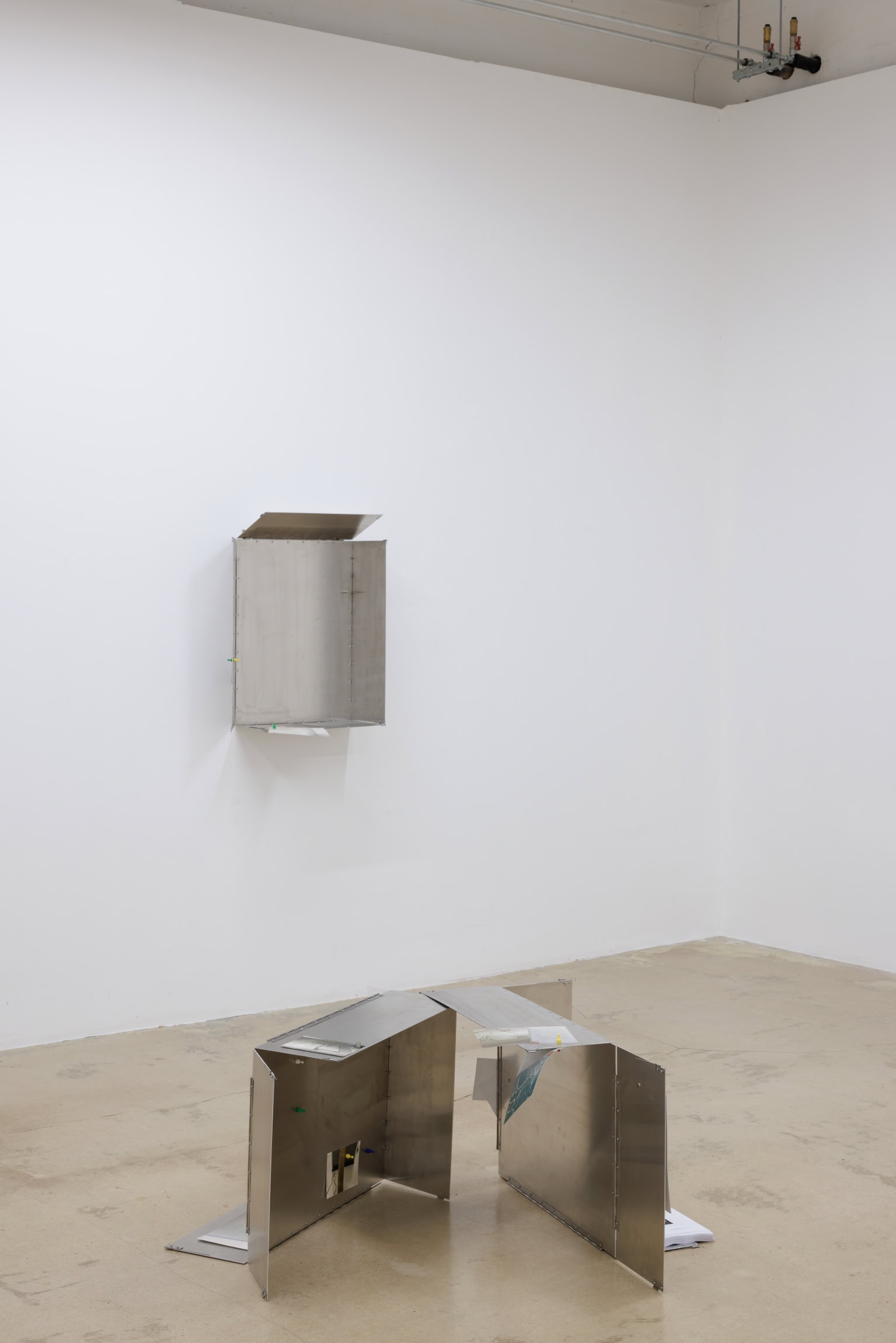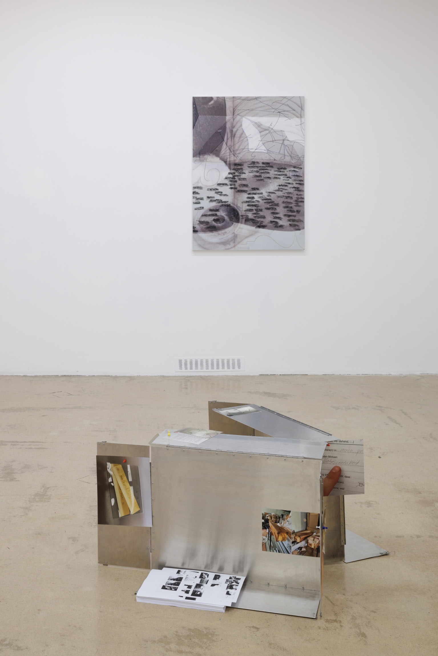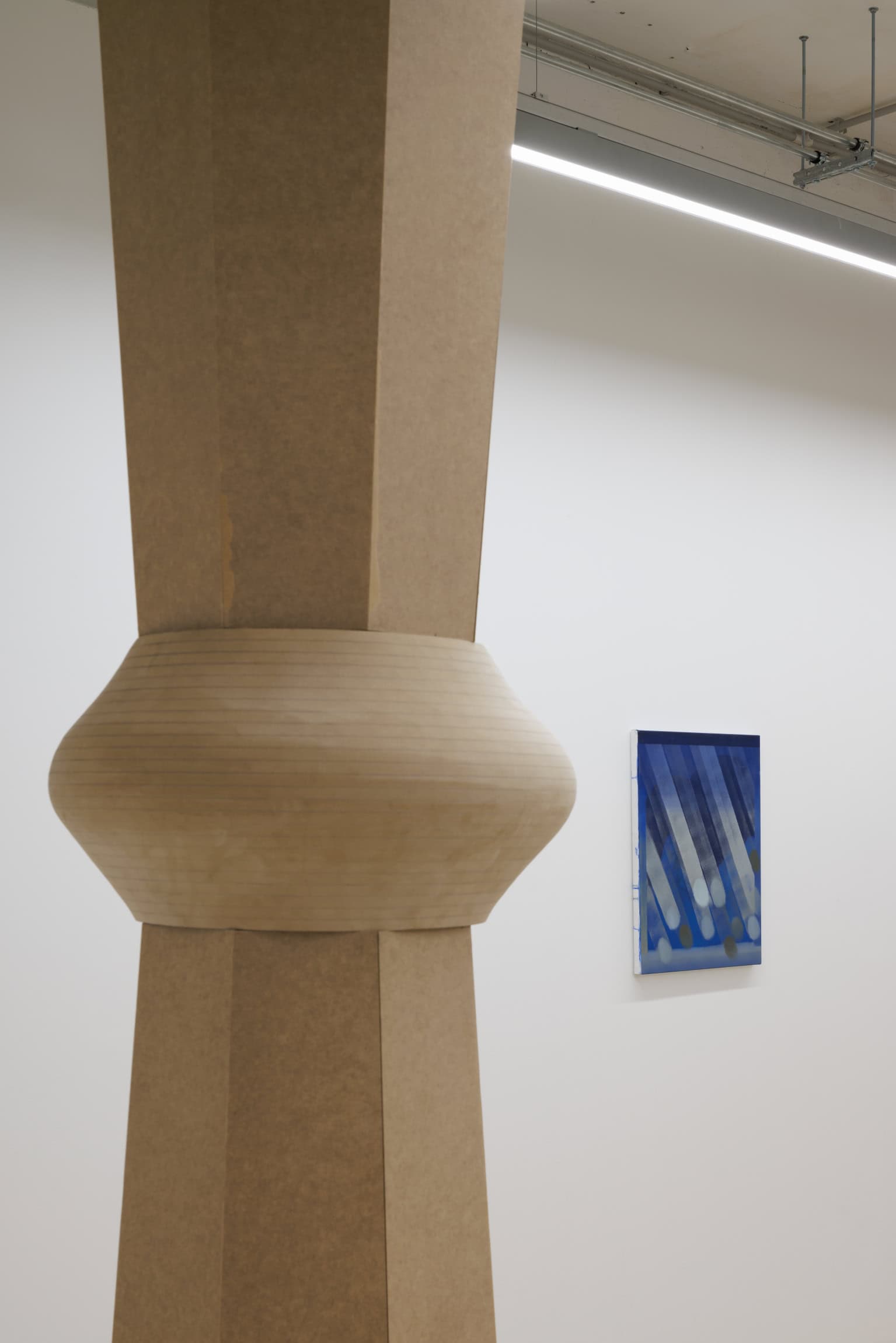 Savukārt Nežberte izstādē iekļautajā darbu sērijā turpina idejisko vadlīniju par vernakulārās arhitektūras formām, veidojot skulptūras. Tās ir no modulāriem elementiem kopā likti, kolonnām līdzīgi vertikāli stāvi, kuru elementu forma aizgūta no Kundziņa izstrādātajām skicēm 1926. gada Dziesmu svētku estrādei, kā arī stilizēti replicējot pirmā valsts aizsargātā kultūras pieminekļa – Brāļu draudzes saiešanas nama Gaidē – kolonnas. Organiski integrējot tēlniecību, attēlu veidošanu un tekstu, izstādei īpaši veidoto metālisko objektu karkasi atsedz Nežbertes aizraušanos ar kolekcionēšanas, citēšanas un kolāžas tehnikām. Formālie eksperimenti ar objet trouvé un autorības sairšanu mākslinieciskās apropriācijas ceļā tālāk pārcelti ekspozīciju pavadošajā zīnā, kurā apvienojas vizuāli un tekstuāli iedvesmas un pētniecības citāti, kā arī dzejnieka Raimonda Ķirķa jaunradīta literāra pasāža.