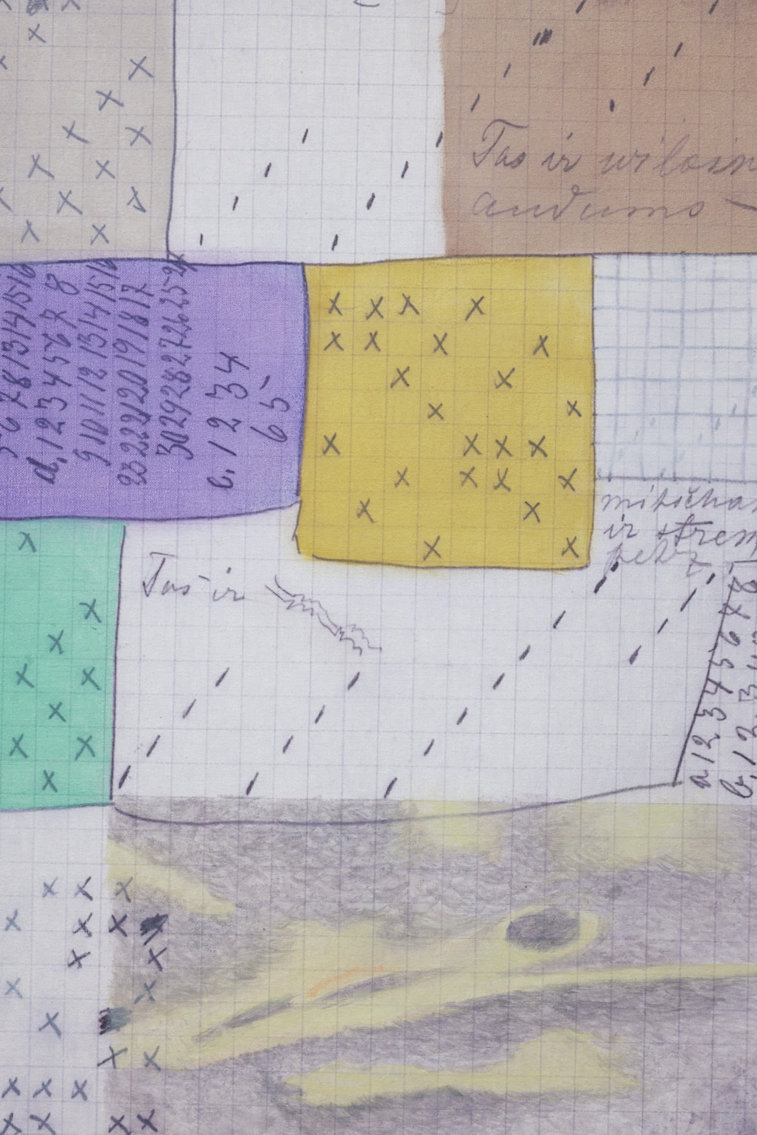 Izvēršot līdzdarbības prakses, autorības un viena mākslinieka figūras autoritātes izvaicāšanu, izstādes ietvaros veidots kolektīvs kopdarbs – telpiska smilšu instalācija jeb “pigmenta istaba”, kuras veidošanā iesaistītas mākslinieces Ieva Putniņa un Elīna Vītola. Autores izmanto dabīgo krāsu pigmentu ieguves metodi no vietējiem augiem, piemēram, no vīgriezes, pelašķa, pļavas nārbuļa, mellenēm, smiltsērkšķiem, bērziem un uzliek tos uz baltā smilšu “audekla”, tādējādi paplašinot glezniecības tēlainības robežas un iezīmējot Latvijas un Baltijas floras devumu.